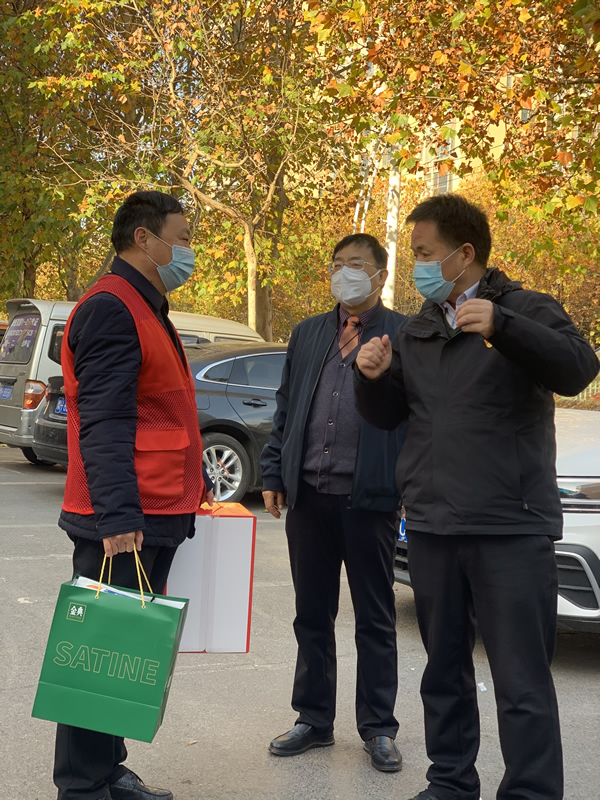 “守護(hù)家園,你們是最美的人!在守護(hù)小區(qū)居民安全的同時(shí)也要注意保重身體,作好個(gè)人防護(hù)!12月1日上午,焦作日?qǐng)?bào)社黨委書記、社長(zhǎng)王愛軍帶隊(duì),先后來到市玉河花園、逸景雅居等小區(qū)疫情防控卡點(diǎn),走訪慰問奮戰(zhàn)在疫情防控一線的焦作日?qǐng)?bào)社黨員干部,并送上“暖心大禮包”。焦作日?qǐng)?bào)社黨委委員、工會(huì)主席趙金瑜參加慰問活動(dòng)。