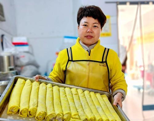 “春卷和卷尖雖然叫法不同,但都是被寓意為美好期望的美食。春卷是素食,而卷尖是葷菜。”該店老板周紅衛已做好了制作卷尖的準備工作,她一邊制作卷尖,一邊和記者嘮著。