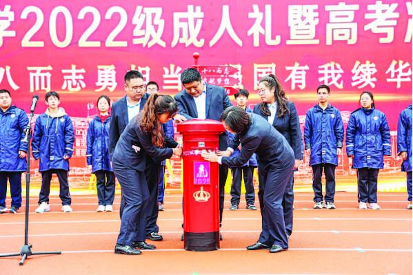 “我行,我能行,我一定行!”在封存百日夢想書環節,高三學生將自己的夢想書遞交到郵筒中,各班班長用堅定的話語喊出本班的夢想目標,展現出沖刺高考的堅定信念。他們的誓言響徹云霄,表達了他們沖刺高考的必勝信心。