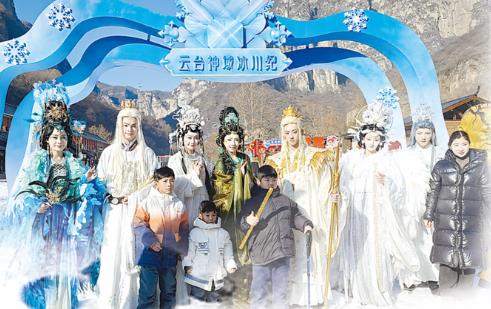 冰雪世界,夢幻啟航。步入冬季,云臺山以《山海經(jīng)》為靈感源泉,匠心獨(dú)運(yùn),打造了一系列令人嘆為觀止的冬季旅游盛宴。全長3000米的泉瀑峽內(nèi),冰瀑群如銀河傾瀉,璀璨奪目。夏日飛流直下的瀑布在此刻變成了冰封的神域世界,淺淺的淡藍(lán)色冰川,游客直呼“仿佛走進(jìn)了億萬年前的海底冰川世界”。超1萬平方米的玩雪場,歡聲笑語不斷。滑雪圈、打雪仗、雪地摩托……各式各樣的雪上娛樂項(xiàng)目,讓游客盡情體驗(yàn)冰雪帶來的樂趣。100余場異彩紛呈的互動表演,點(diǎn)燃冬日熱情。小丑嘉年華、獸裝舞蹈、戲曲聯(lián)唱、國風(fēng)表演、古彩戲法等節(jié)目輪番上演,讓游客在欣賞美景的同時,也能感受到濃厚的文化氛圍。而冰川神域劇本殺則是本次冬季旅游的一大亮點(diǎn)。國風(fēng)愛好者們化身雪凰、冰夷、青鳥、少昊等山海瑞獸,可與NPC現(xiàn)場互動,在游玩的過程中感受山海云臺的魅力。