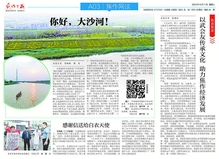 大沙河生態(tài)環(huán)境質(zhì)量的不斷改善,繪就了“太行山前百鳥飛,水碧花紅魚兒肥”、人與自然和諧共處的生態(tài)畫卷。這些變化極大改善了城市生態(tài)環(huán)境,提升了城市品位,拓展了城市發(fā)展空間,提高了城市價值,不但為焦作轉(zhuǎn)型發(fā)展提供了動力,也為黃河流域生態(tài)保護和高質(zhì)量發(fā)展提供了有力支撐,使人民群眾在享受“生態(tài)紅利”的同時,收獲了滿滿的幸福感、安全感!