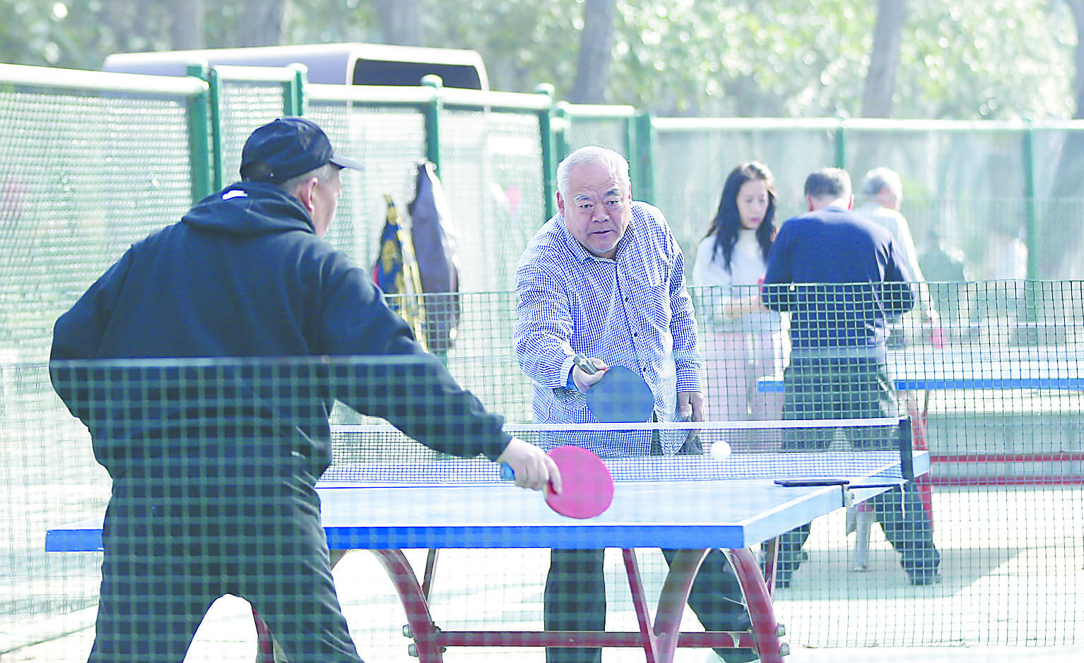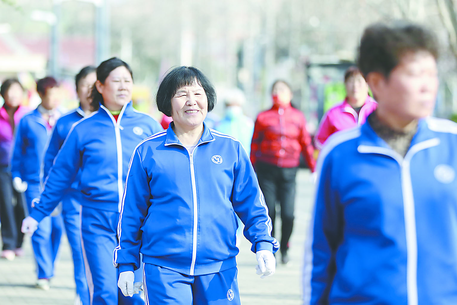圖①② 到戶外鍛煉的老年人越來越多。