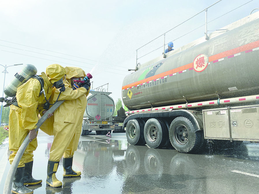 4月17日上午,由市安委辦主辦,武陟縣委、縣政府承辦的危險化學品道路運輸突發事故應急演練在武陟縣西苑大道“硬核”上演。
