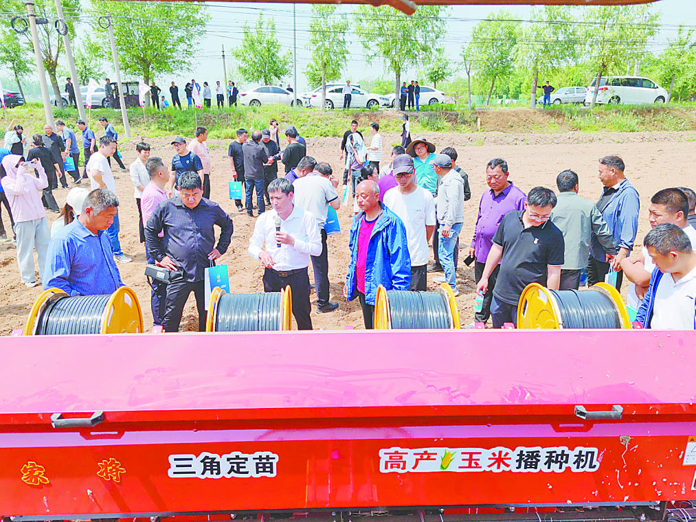 新一輪千億斤糧食產能提升行動的潛力何在?4月26日,全市玉米密植滴灌精準調控技術培訓暨滴灌鋪設現場觀摩會在武陟縣舉行,來自我市各縣(市、區)農民合作社、家庭農場負責人和種植大戶160余人參加培訓。