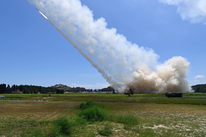 東部戰(zhàn)區(qū)陸軍某旅組織遠火分隊在臺灣海峽進行實彈射擊,完成精確打擊任務。這是發(fā)射現(xiàn)場(2022年8月4日攝)。新華社發(fā)(賴橋泉 攝)