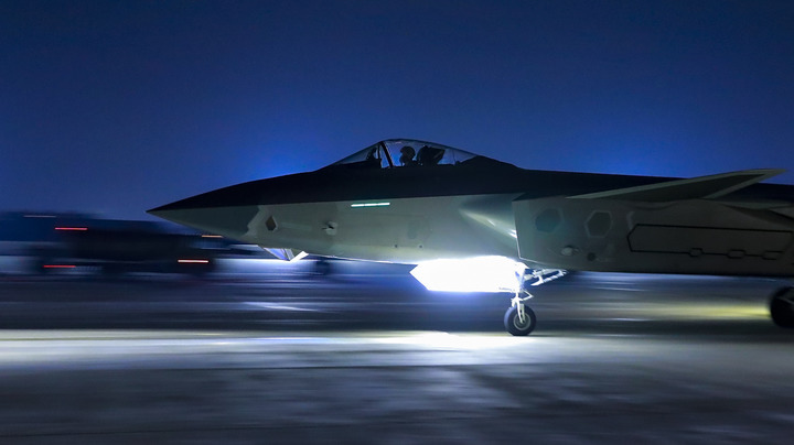 東部戰(zhàn)區(qū)空軍航空兵某旅“王海大隊”飛行員在夜間飛行訓練中駕機滑行(2023年7月14日攝)。新華社發(fā)(李吉光 攝)