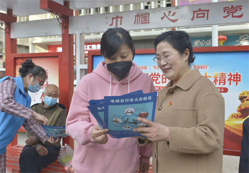 山陽區藝新街道冬香好媽媽工作站黨支部書記張冬香和志愿者們在向社區居民宣傳二十大精神。