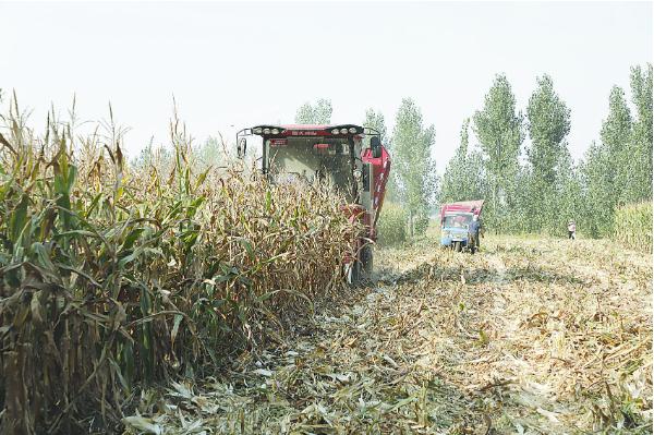 9月24日,一輛玉米收獲機(jī)在溫縣武德鎮(zhèn)田間收獲玉米。 馬思遠(yuǎn) 攝