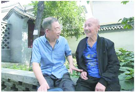 圖② 作者2021年9月11日在西萬村采訪田時風的兒子田鐸(右)。(記者 吉亞南 攝)