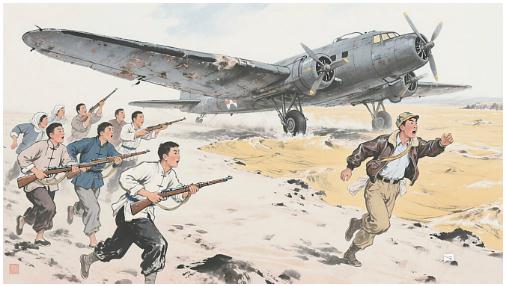在田間勞動的人們漸漸地看清楚了,這是國民黨的飛機。突然,有人驚呼道:“快看!看!落下來了!”隨著“轟隆”一聲巨響,飛機真的墜地了。
