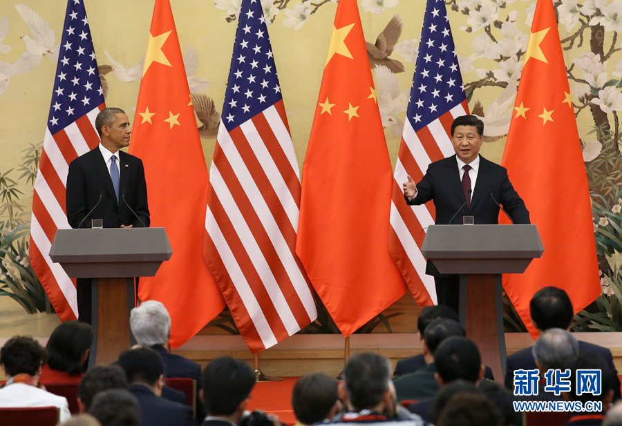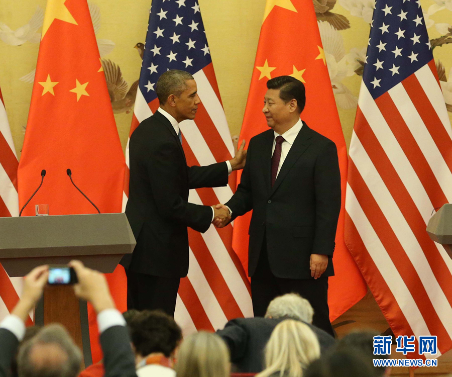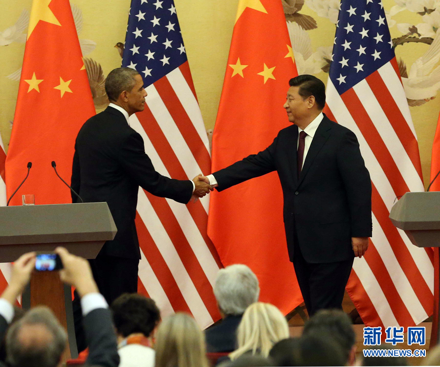 新華網北京11月12日電(記者劉華、侯麗軍)國家主席習近平12日在人民大會堂同美國總統奧巴馬舉行會談。會談后,兩國元首共同會見記者。
