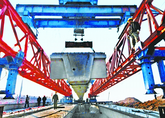 10時02分,隨著市委書記路國賢宣布迎賓路改造工程大沙河橋合龍,橋面上,巨大的龍門架將最后一塊重達95噸的箱梁緩緩放在蓋梁上。這標志著我市2008年重點工程迎賓路改造項目圓滿完成了年度建設任務。路國賢以及市委常委、常務副市長趙海燕同數百名嘉賓、工程建設者見證了這一激動人心的時刻。