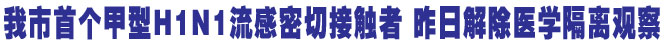 我市首個甲型H1N1流感密切接觸者 昨日解除醫學隔離觀察