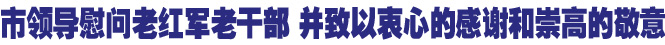 本報訊 (記者王言、孫軍) 在全市人民喜迎新中國60華誕之際,昨日上午,市領導路國賢、郭國明、王太峰、張建設、穆玉華、孫厚軍、周學相分兩路慰問了為新中國成立和建設作出突出貢獻的老紅軍、離休干部,代表市委、市人大常委會、市政府、市政協、焦作軍分區和全市人民,向老干部們致以衷心的感謝和崇高的敬意。