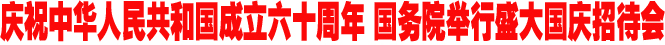 據(jù)新華社北京9月30日電(記者趙承、車玉明)滄桑巨變波瀾壯闊,共同祝愿?jìng)ゴ笞鎳?guó)。國(guó)務(wù)院30日晚在人民大會(huì)堂舉行盛大國(guó)慶招待會(huì),熱烈慶祝中華人民共和國(guó)成立60周年。胡錦濤、江澤民、吳邦國(guó)、溫家寶、賈慶林、李長(zhǎng)春、習(xí)近平、李克強(qiáng)、賀國(guó)強(qiáng)、周永康等黨和國(guó)家領(lǐng)導(dǎo)人同4000余名中外人士歡聚一堂,共慶佳節(jié)。