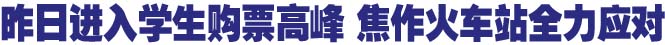 據介紹,從5日開始,來購票的學生明顯增多,但還不用長時間排隊;昨日學生數量猛增,河南理工大學、焦作師專、焦作大學等高校的學生都開始購買車票,進入學生客流購票高峰期。