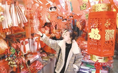 春節臨近,我市各大商超、商城的“年貨街”熱鬧非凡,市民紛紛前來選購燈籠、中國結和春聯等飾品,處處洋溢著喜慶的節日氣氛。圖為1月31日市民在山陽商城選購年貨。 記者 宋崇飛 攝