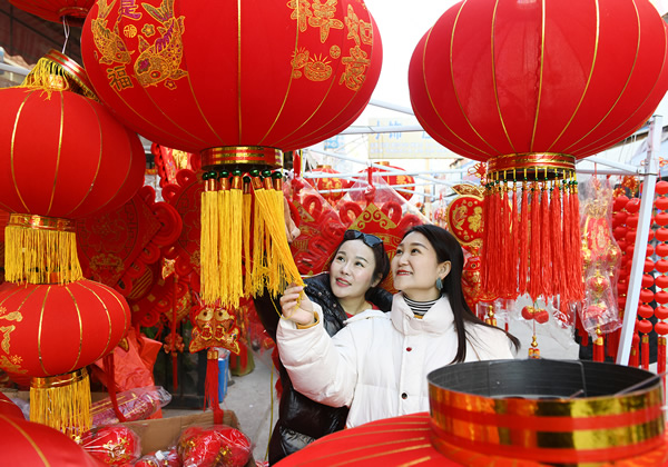 2月2日,新山陽商城里兩位女士在挑選火紅的新年飾品。春節臨近,記者在新山陽商城看到,年貨滿滿,新飾品琳瑯滿目紅紅火火。