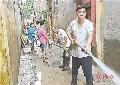 積水退去后,魏松林分包光亞新村一條街的清淤工作,一干就是幾個小時,魏松林的表現感動了群眾,大家紛紛參與到清理工作中。