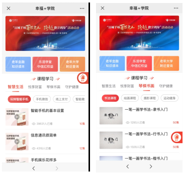 中信銀行專門給老年朋友準備的“課程學習”一共有智能生活、悅享財富、琴棋書畫和守護健康四大板塊,都是老年朋友需要和關心的內容,總課程2000余節,總時長超過1.8萬分鐘。
