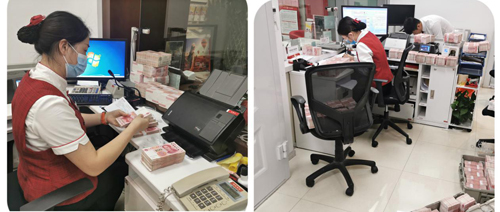 當日中信銀行鄭州分行營業網點三個柜臺均開放,對公柜臺下午預約開戶、銷戶、變更業務已排滿,兩個綜合柜臺面對等待客戶也并未休息。中信銀行鄭州分行工作人員在了解情況后,當即表示讓客戶放心,一旦其他窗口有空閑,將安排兩個窗口清點,一定會將款項及時存入賬戶。隨后,工作人員在對經辦客戶身份聯網核查核實無誤后開始清點現金,同時工作人員及時將調繳款箱調至網點,保證晚上款箱充足。