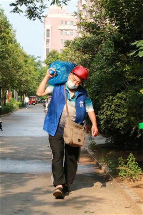 “這個(gè)小區(qū)有電梯,相對(duì)輕松一些。”李東方對(duì)記者說(shuō)。他負(fù)責(zé)的區(qū)域是解放路以北的小區(qū),由于多是老舊小區(qū),很多住宅樓都沒(méi)有電梯。很多時(shí)候,他只能把桶裝水扛上樓。