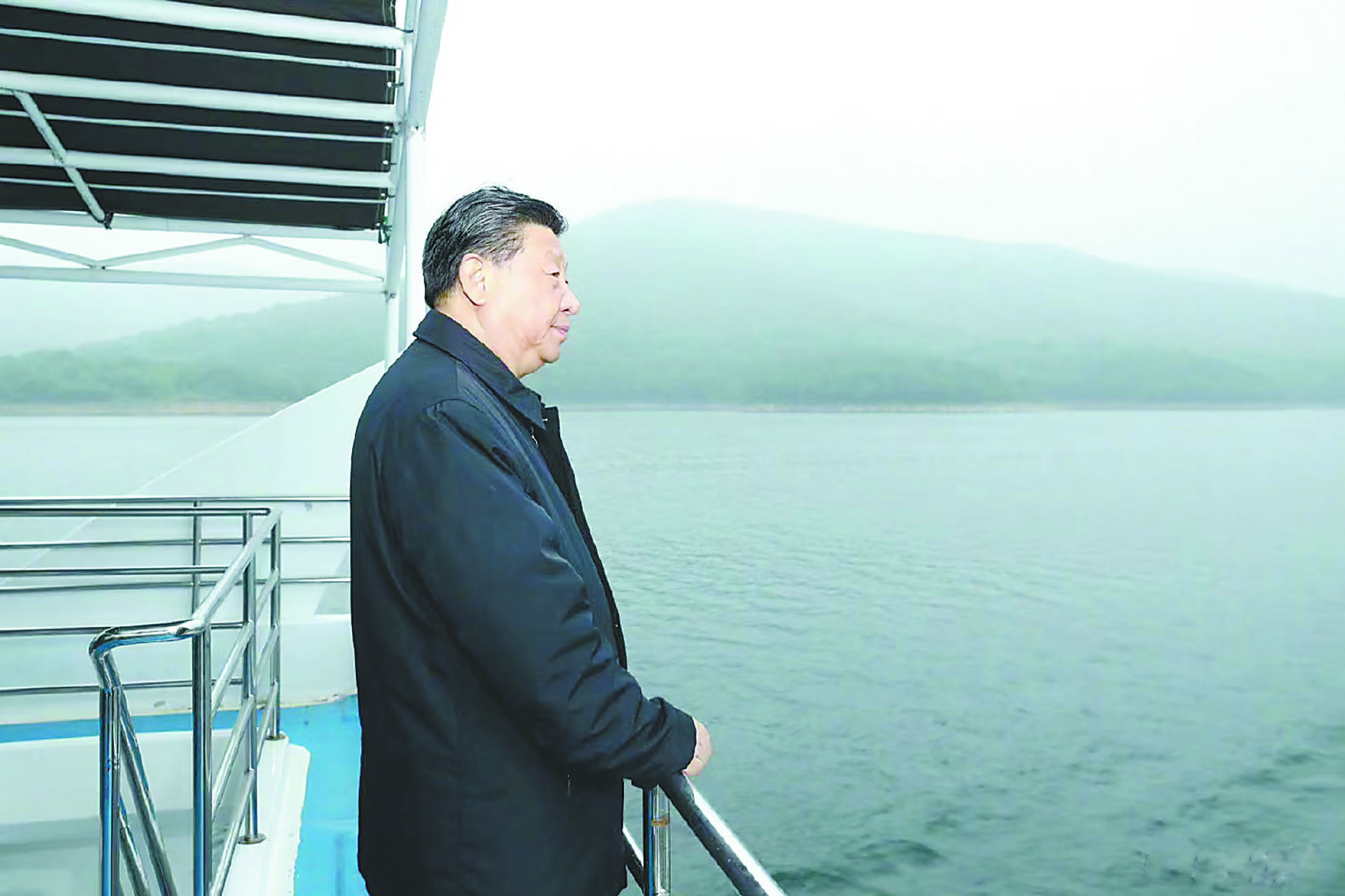 2021年5月14日上午,中共中央總書(shū)記、國(guó)家主席、中央軍委主席習(xí)近平在河南省南陽(yáng)市主持召開(kāi)推進(jìn)南水北調(diào)后續(xù)工程高質(zhì)量發(fā)展座談會(huì)并發(fā)表重要講話。這是座談會(huì)前,習(xí)近平于13日在南陽(yáng)市淅川縣乘船考察丹江口水庫(kù)。