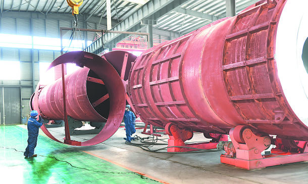 位于博愛經濟技術開發區的河南龍佰智能裝備制造有限公司工人在生產破碎機滾筒。