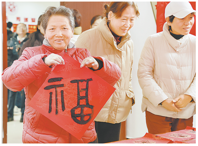 當(dāng)天,社區(qū)黨群服務(wù)中心內(nèi)暖意融融,市文聯(lián)的書法家們飽含熱情,在一張張鮮艷的紅紙上揮毫潑墨、一氣呵成,有行書、楷書、隸書、篆書,一副副春聯(lián)和一個個福字飽含喜氣和美好祝福。